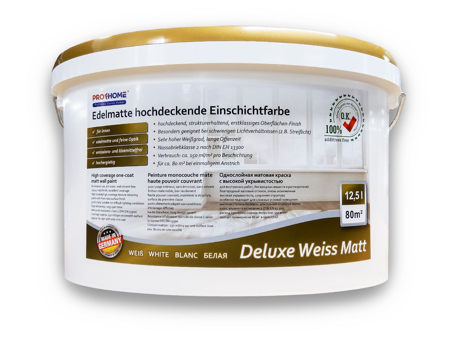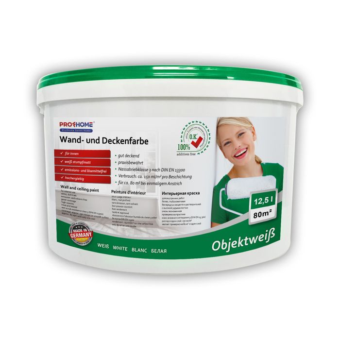 Peinture mur et plafond PROFHOME 300-31-10 peinture universelle pour intérieurs bien couvrante blanche mate 125 L rend. max 800 m2