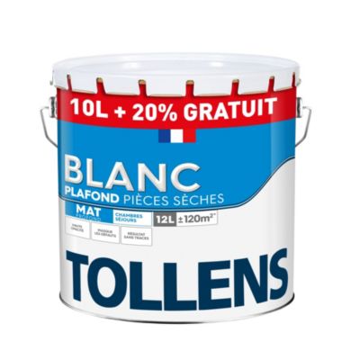 Peinture plafond pièces sèches Tollens blanc mat 10L+20% gratuit