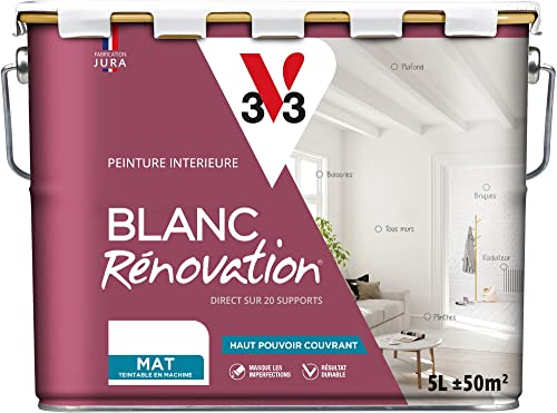 V33 Peinture blanche mur et plafond mat - multi-supports - monocouche - BLANC RENOVATION®, 5L