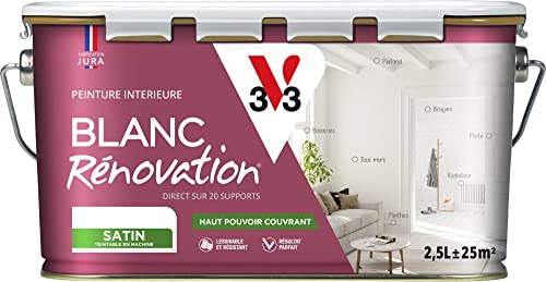 V33 Peinture blanche mur et plafond satinée - multi-supports - monocouche - BLANC RENOVATION®, 2,5L