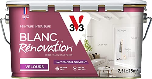 V33 Peinture blanche mur et plafond veloutée - multi-supports - monocouche - BLANC RENOVATION®, 2,5L