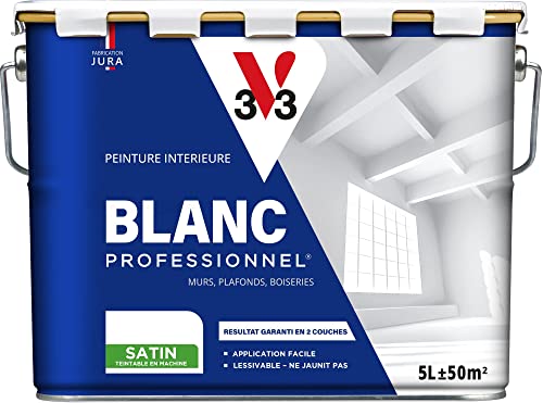 V33 Peinture Blanche Mur Et Plafond Satin, BLANC PROFESSIONNEL, 5L