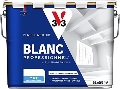 V33 Peinture Blanche Mur Et Plafond Mat, BLANC PROFESSIONNEL, 5L