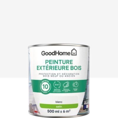 Peinture bois extérieur blanc satin GoodHome 0.5 L