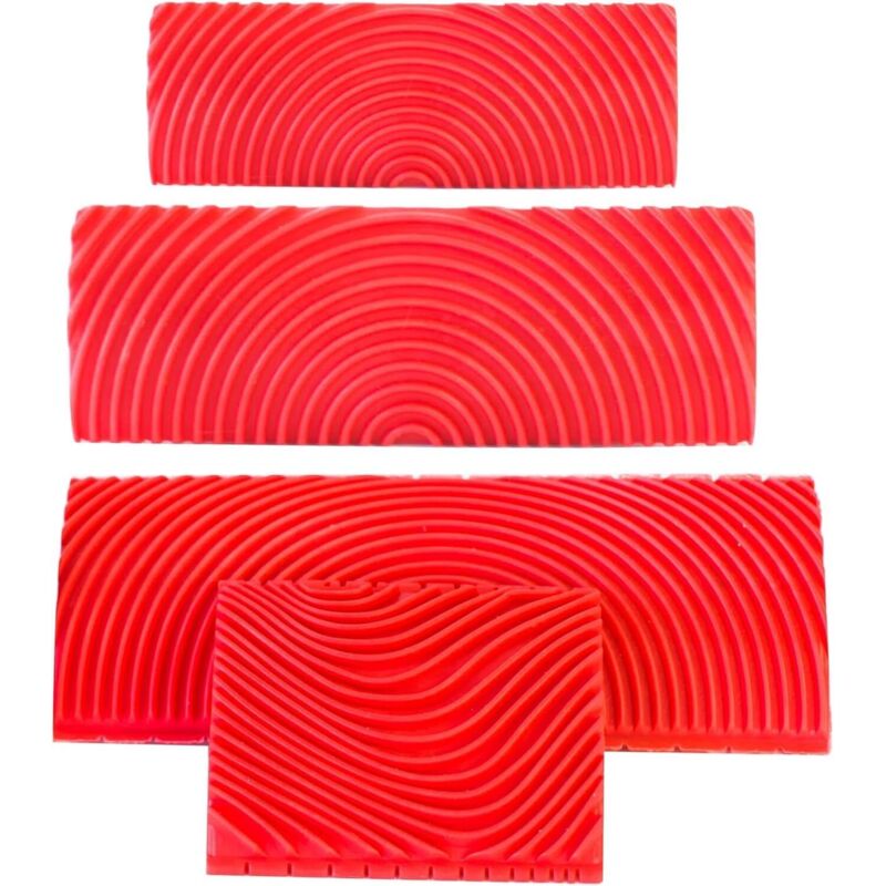 4 Pièces Outil de Grain de Bois de Caoutchouc, Outils Motif Bois, Relook Bois Outil à Grain de Bois Peinture Effet Bois pour Mur, Meuble Rouge