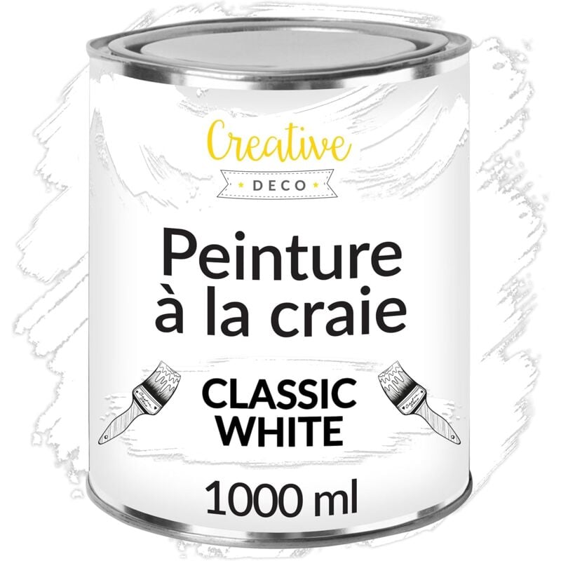 Creative Deco - Peinture à la Craie Blanche 1L Mat et Lavable pour Meuble Bois