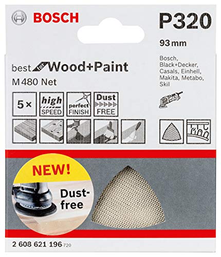 Bosch Professional 5x Triangles de Ponçage M480 Best for Wood and Paint (Bois et peinture, grosseur de grain G320, Accessoires pour ponceuse Delta)
