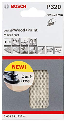 Bosch Accessories 10 feuilles abrasives M480 Best for Wood and Paint (Bois et peinture, 70 x 125 mm, grosseur de grain P320, Accessoires pour ponçage)