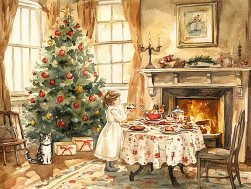 Anmiong Peinture par Numéros Adulte Noël, DIY Peinture Acrylique pour Adultes Enfants Débutants 60x80 cm Cheminée Numéro d'Art Kit par Décoration Murale et Cadeaux Pour La Maison, (Sans Cadre)-#896k