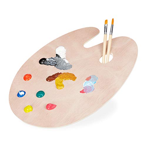 Relaxdays Palette de peinture en bois,Palette de mélange avec trou, palette pour artistes, couleur naturelle
