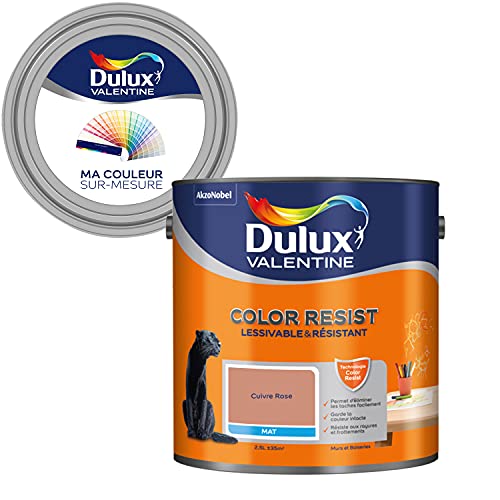 Dulux Valentine Color Resist Pièces à Vivre - Peinture Intérieure Murs, Plafonds, Boiseries - Lessivable et Résistante - Couleur : Cuivre Rose - 0,5 L