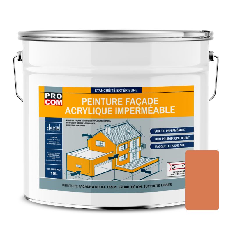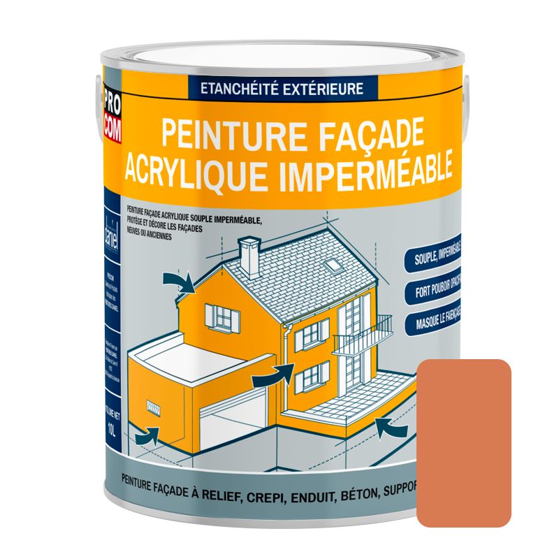 Peinture façade PROCOM crépi, façade à relief, imperméabilisation et protection des façades - Durable jusqu'à 10 ans 2.5 litres Argile (RAL 050 60 40)