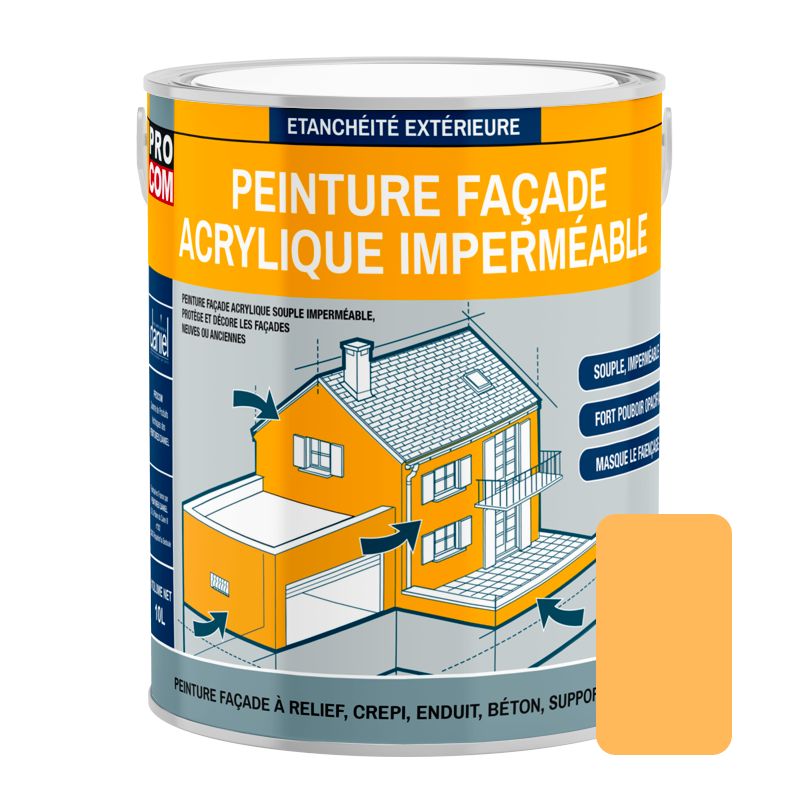 Peinture façade PROCOM crépi, façade à relief, imperméabilisation et protection des façades - Durable jusqu'à 10 ans 2.5 litres Jaune (RAL 075 80 50)