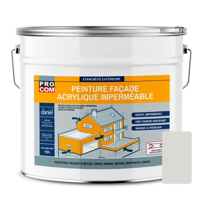 Peinture façade PROCOM crépi, façade à relief, imperméabilisation et protection des façades - Durable jusqu'à 10 ans 2.5 litres Gris (RAL 7001)