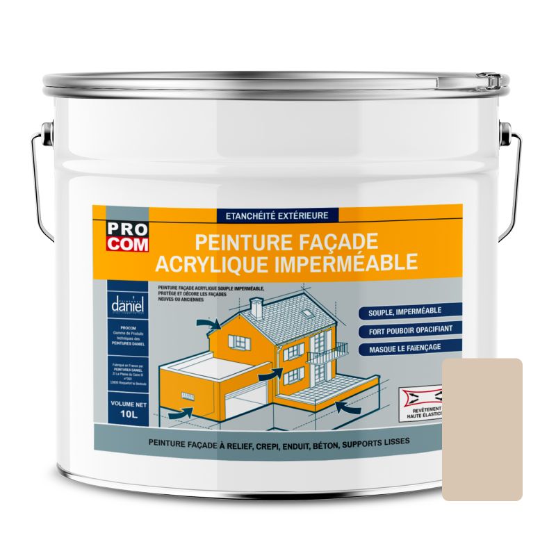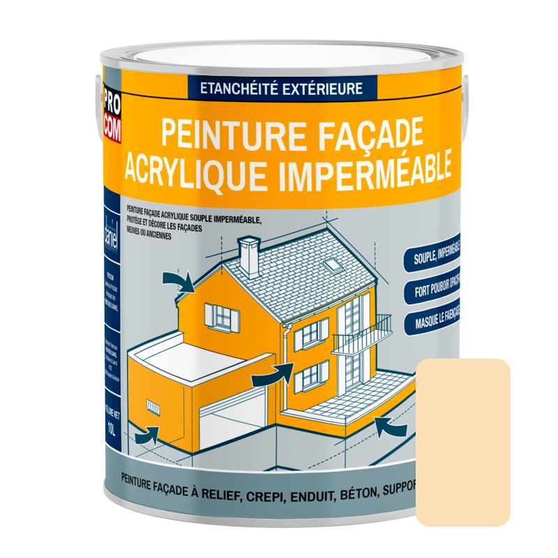Peinture façade PROCOM crépi, façade à relief, imperméabilisation et protection des façades - Durable jusqu'à 10 ans 10 litres Beige (RAL 080 80 10)
