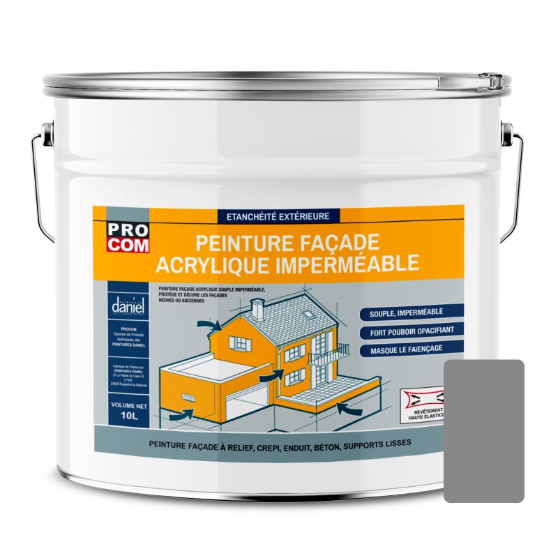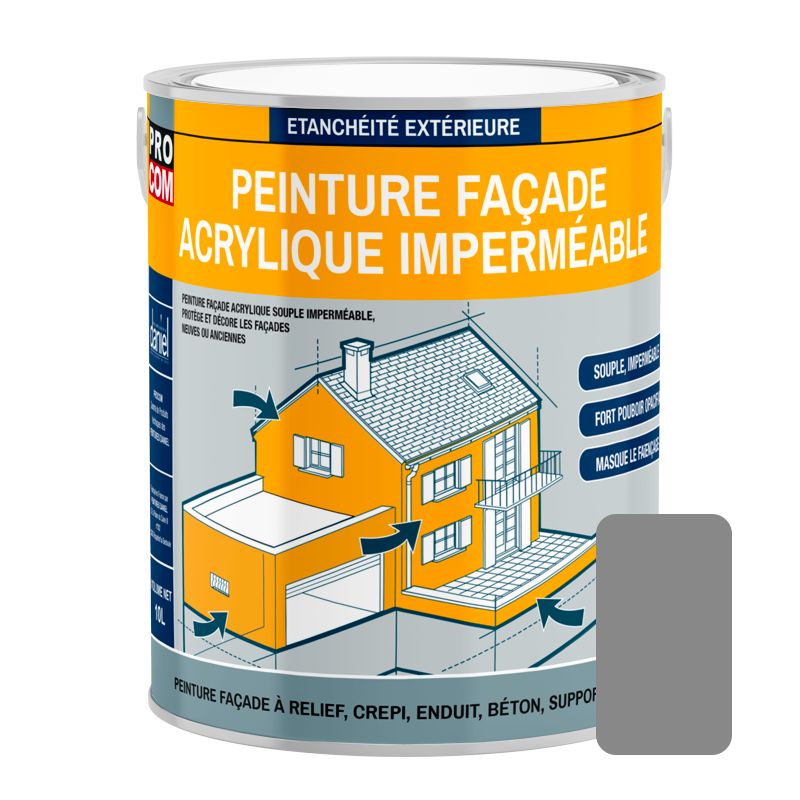 Peinture façade PROCOM crépi, façade à relief, imperméabilisation et protection des façades - Durable jusqu'à 10 ans 10 litres Gris Granit ( RAL 7035)