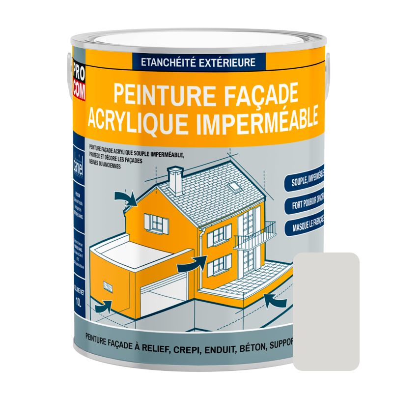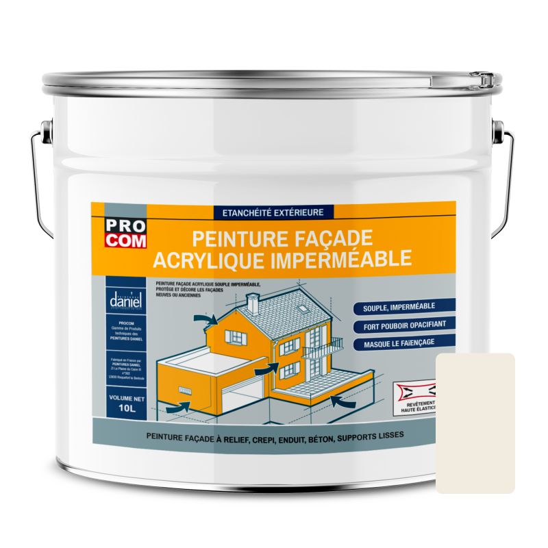 Peinture façade PROCOM crépi, façade à relief, imperméabilisation et protection des façades - Durable jusqu'à 10 ans 2.5 litres Blanc cassé (RAL 9010)