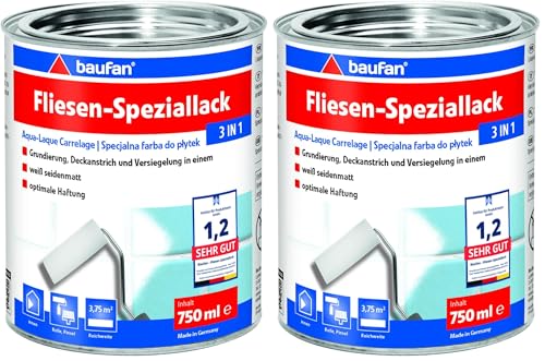 Baufan 3in1 Vernis Spécial Blanc Satiné - Vernis pour Salle de Bain, Cuisine et Intérieur, Peinture pour Carrelage pour Couche de Finition, Vitrification (Lot de 2)