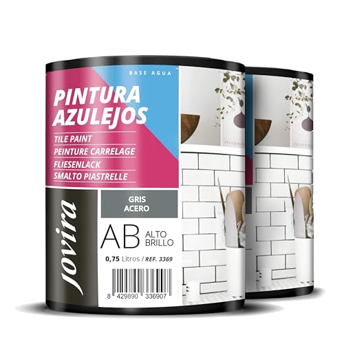 JOVIRA PINTURAS PEINTURE CARRELAGE Donnez une nouvelle image à votre cuisine et salle de bain. (2x750 Millilitres, Gris Acier)