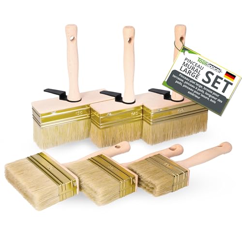 ToolSpace 6 Pièce Pinceau 70/90/110/130/140/150mm Brosse en Bois pour Lasure Badigeon Chauler de la Peinture à la Chaux Spalter Large avec Poil Naturel pour Application Terrasse Mur Murale à Effet