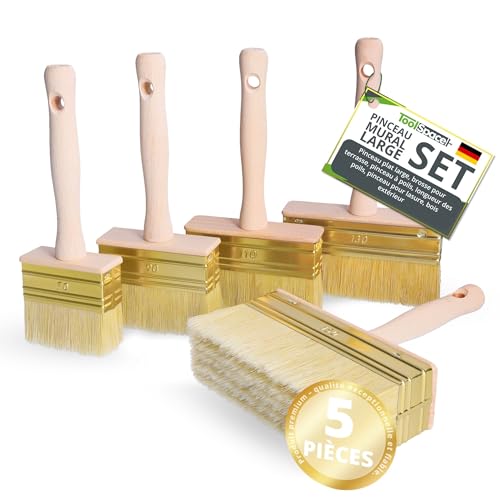 ToolSpace 5 Pièce Pinceau 70/90/110/130/150 mm Brosse en Bois pour Lasure Badigeon Chauler de la Peinture à la Chaux Spalter Large avec Poil Naturel pour Application Terrasse Mur Murale à Effet Papier