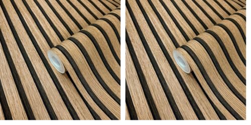WALLCOVER Papier peint aspect bois, marron, panneaux acoustiques, effet 3D, panneaux en bois scandinave, aspect naturel, moderne, 10,05 x 0,53 m, fabriqué en Allemagne (Lot de 2)