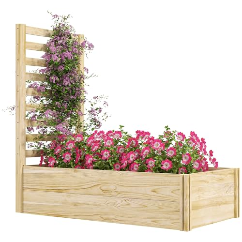 Outsunny Jardinière avec 3 Treillis modulable, lit surélevé de Jardin, jardinière extérieure, bac à Fleurs en Bois pour Balcon terrasse Patio, 222 x 114 x 109 cm, Effet Bois Naturel