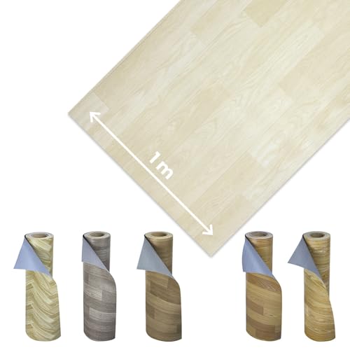OLIVO.Shop Tapis PVC effet bois, revêtement de sol en PVC, vinyle au mètre, design en bois, imperméable, rouleau facile à couper 1 mètre (naturel, 1 x 3 m)
