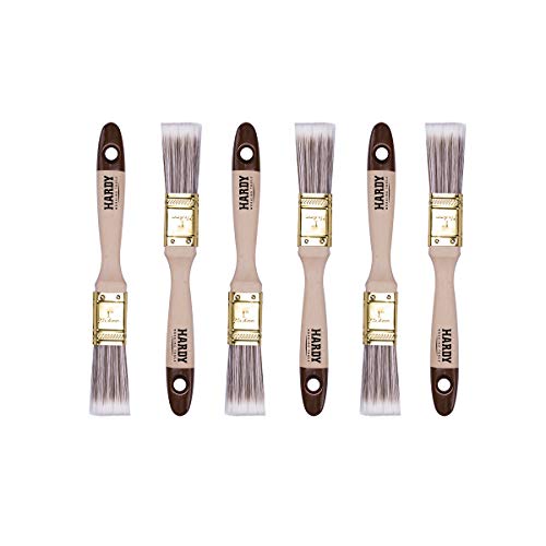 HARDY WORKING TOOLS - Lot de 6 Pinceaux Plats 25mm - Série 45 - Fibres Synthétiques, Manche Bois Naturel, Virole en Acier – Pour Peinture, Vernis, Huile et Lasure