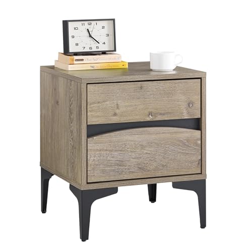 SoBuy Table de Chevet, 2 tiroirs façade courbée, Effet Bois & Pieds métalliques, Table d’appoint Moderne pour Chambre, 40×40×47 cm, Naturel FBT165-N