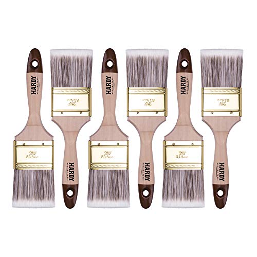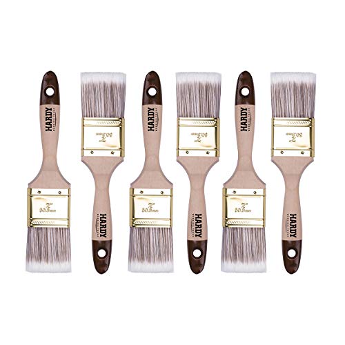 HARDY WORKING TOOLS Lot de 6 Pinceaux Plats 50 mm - Série 45 - Fibres Synthétiques, Manche Bois Naturel, Virole en Acier – Pour Peinture, Vernis, Huile et Lasure