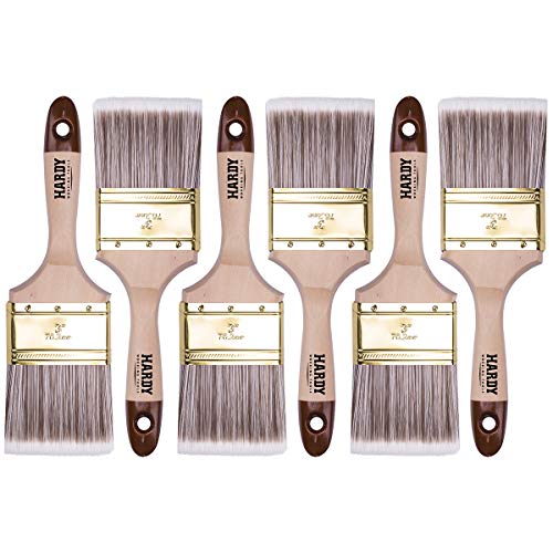 HARDY WORKING TOOLS Lot de 6 Pinceaux Plats 75 mm - Série 45 - Poiles Synthétiques, Manche Bois Naturel, Virole en Acier – Pour Peinture, Vernis, Huile et Lasure