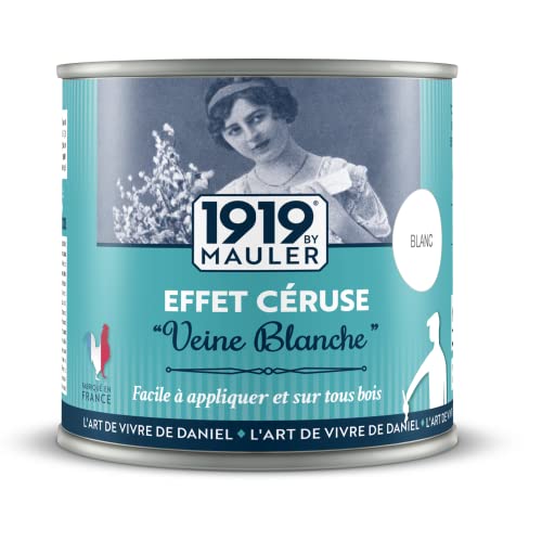 1919 BY MAULER - Peinture Céruse « Effet Cérusé » - BLANC - 0,5L - Patine et blanchit les veines du bois, effet shabby chic : meuble, parquet, escalier, boiserie