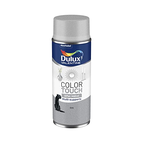 Dulux Valentine Peinture Intérieure et Extérieure Aérosol Color Touch - Pour bois, plastique, PVC, carton, papier - Gris Métallisé Effet Metal - 400ml