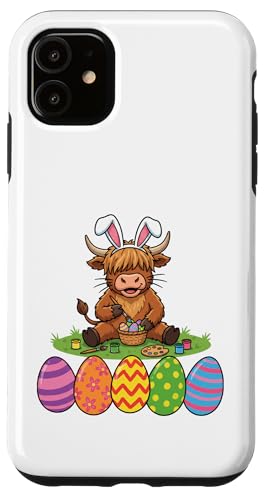 Highlander Cow Easter Bunny Peinture œufs pour Enfant Coque pour iPhone 11