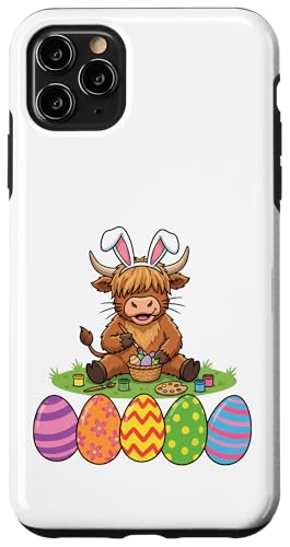 Highlander Cow Easter Bunny Peinture œufs pour Enfant Coque pour iPhone 11 Pro