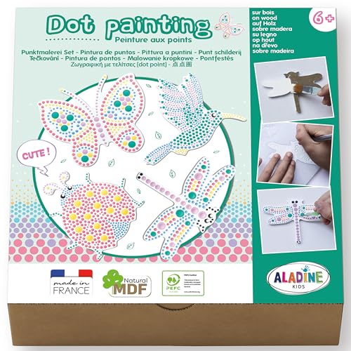 Aladine - Kit Dot Painting Nature - À partir de 6 ans - Peinture aux Points Enfant - Coffret Loisirs Créatifs Animaux - Garçon Fille - Idée Cadeau Anniversaire, Noël - 85484