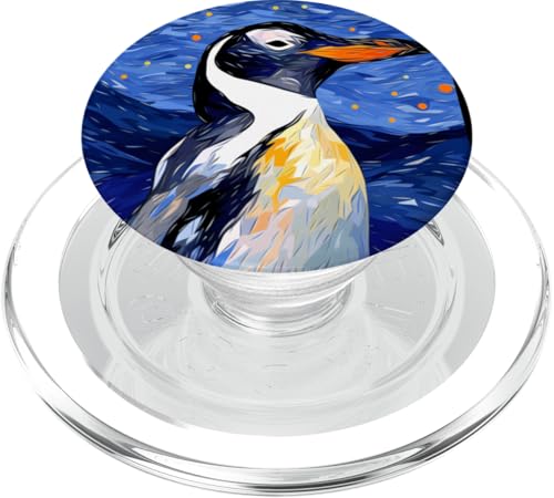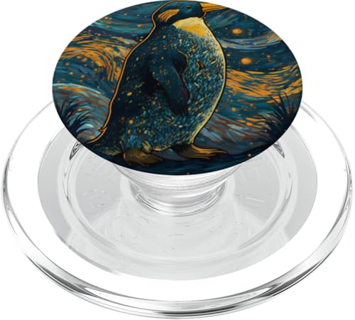 Macaroni Pingouin dans la Nuit étoilée Peinture Homme Femme Enfant PopSockets PopGrip pour MagSafe