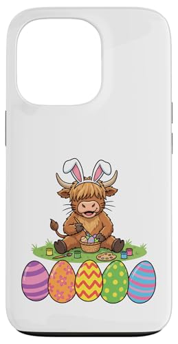 Highlander Cow Easter Bunny Peinture œufs pour Enfant Coque pour iPhone 13 Pro