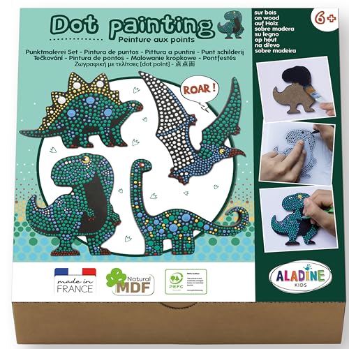 Aladine - Kit Dot Painting Dinosaure - À partir de 6 ans - Peinture aux Points Enfant - Coffret Loisirs Créatifs Dinos - Garçon Fille - Idée Cadeau Anniversaire, Noël - 85479
