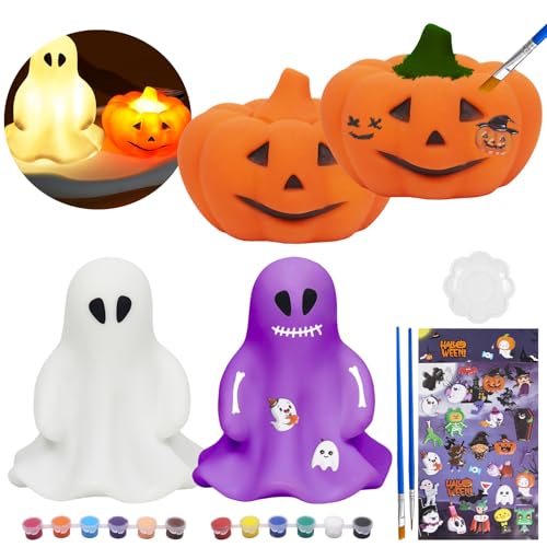 SOETDERT Kit Peinture Enfant, Peinture Lampe Halloween, Veilleuse de Peindre 3D Citrouille Fantôme, Jeu Créatif et Activité Manuelle Enfant, Loisirs Créatifs Halloween Bricolage, Cadeau Fille Garcon