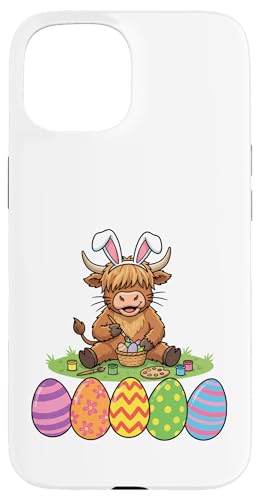 Highlander Cow Easter Bunny Peinture œufs pour Enfant Coque pour iPhone 15