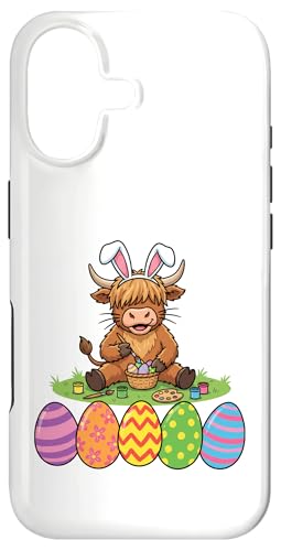 Highlander Cow Easter Bunny Peinture œufs pour Enfant Coque pour iPhone 16