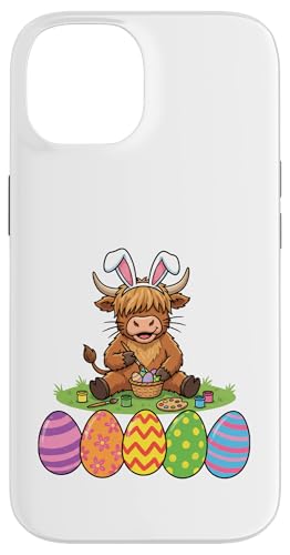 Highlander Cow Easter Bunny Peinture œufs pour Enfant Coque pour iPhone 14