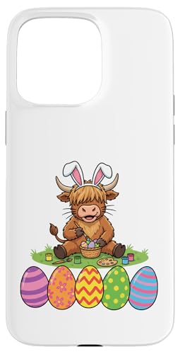 Highlander Cow Easter Bunny Peinture œufs pour Enfant Coque pour iPhone 15 Pro Max