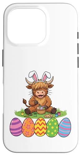 Highlander Cow Easter Bunny Peinture œufs pour Enfant Coque pour iPhone 16 Pro