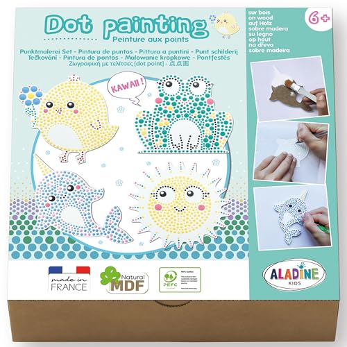 Aladine - Kit Dot Painting Animaux Kawaii - À partir de 6 ans - Peinture aux Points Enfant - Coffret Loisirs Créatifs - Garçon Fille - Idée Cadeau Anniversaire, Noël - 85481