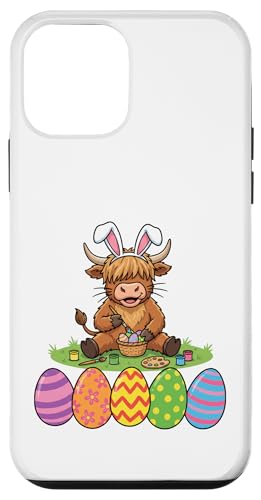 Highlander Cow Easter Bunny Peinture œufs pour Enfant Coque pour iPhone 12/12 Pro