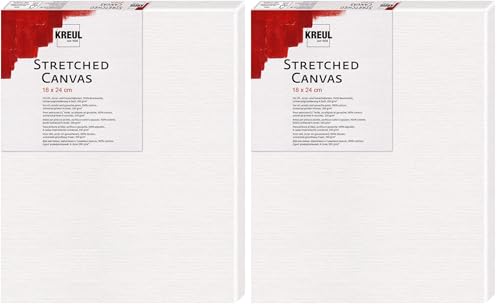 KREUL 591824 - Stretched Canvas, châssis 18 x 24 cm qualité débutant, pour peinture acrylique et gouache, toile en coton avec 4 couches de fond (Lot de 2)