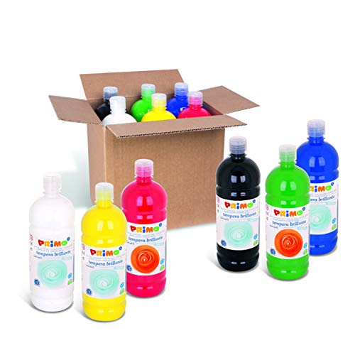 PRIMO - Gouache pour Enfant +3 Ans avec 6 Couleurs Tempera pour Peinture Gouache 1L avec Bouchon Doseur, Couleurs Enfants pour Peindre Papier, Tissu et Verre, Loisirs Créatifs et Fourniture Scolaire
